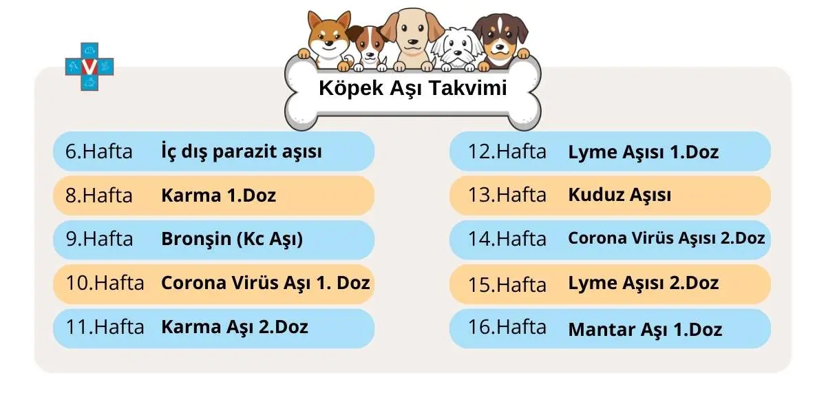 Köpek aşı takvimi içinde olan aşılar aşağıda yazılı olduğu gibidir.